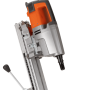 Машина бурильная электрическая со стойкой DM 340 служит для бурения отверстий в бетоне, кирпиче и камне. Бурильная машина Husqvarna DM 340 имеет простую модульную конструкцию и проста в сборке. Машина оснащена патрубком со шлангом воды, который при повороте на 180 градусов обеспечивает подключение воды. Модель DM 340 имеет три скорости вращения и максимальный диаметр бурения 400 мм. Машина оборудована водоохлаждаемым узлом передачи со шлангом, который проходит через шпиндель. Машина оснащена светодиодными индикаторами, которые указывают выходную мощность. Таким образом, можно работать при максимальной мощности, не повреждая бурильную машину. Для удобства и безопасности работы машина оборудована системами SoftStart (плавный старт) ,SmartStart (понижение мощности), Elgard (защита от перегрузки ) и регулятором скорости