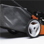 Высота стрижки регулируется одним рычажком, доступны пять вариантов от 3 до 8,7 см. Охватываемая ширина покоса за один проход — 53 см, за счет чего обработка территории не займет много времени.