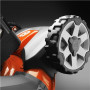 Рычаг управления скоростью позволяет переключаться между использованием правой или левой руки для плавной регулировки скорости. Это гарантирует эргономичность работы, а также позволяет с легкостью косить траву вдоль живых изгородей и вокруг препятствий, так как вы можете отпустить одну руку, а косилка продолжит работать.