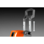 Алюминиевая ручка для переноски облегчает транспортировку. Быстроразъемное соединение шланга, большие и прочные колеса для лучшего сцепления и длинная распылительная трубка делают работу еще удобнее.