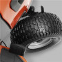 Первоклассная усиленная режущая дека с порошковым покрытием устойчива к коррозии и долговечна. Стальная трубка по краю режущей деки обеспечивает повышенную долговечность.Дека оснащена колесами для предотвращения повреждения газона.
