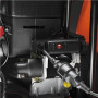 Подключите к источнику питания и запустите двигатель нажатием кнопки. Теплый двигатель легко заводится пусковой рукояткой.