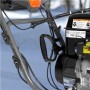 Подключитесь к розетке и запустите двигатель, нажав кнопку. Когда двигатель прогрет, ручкой стартера легко завести.